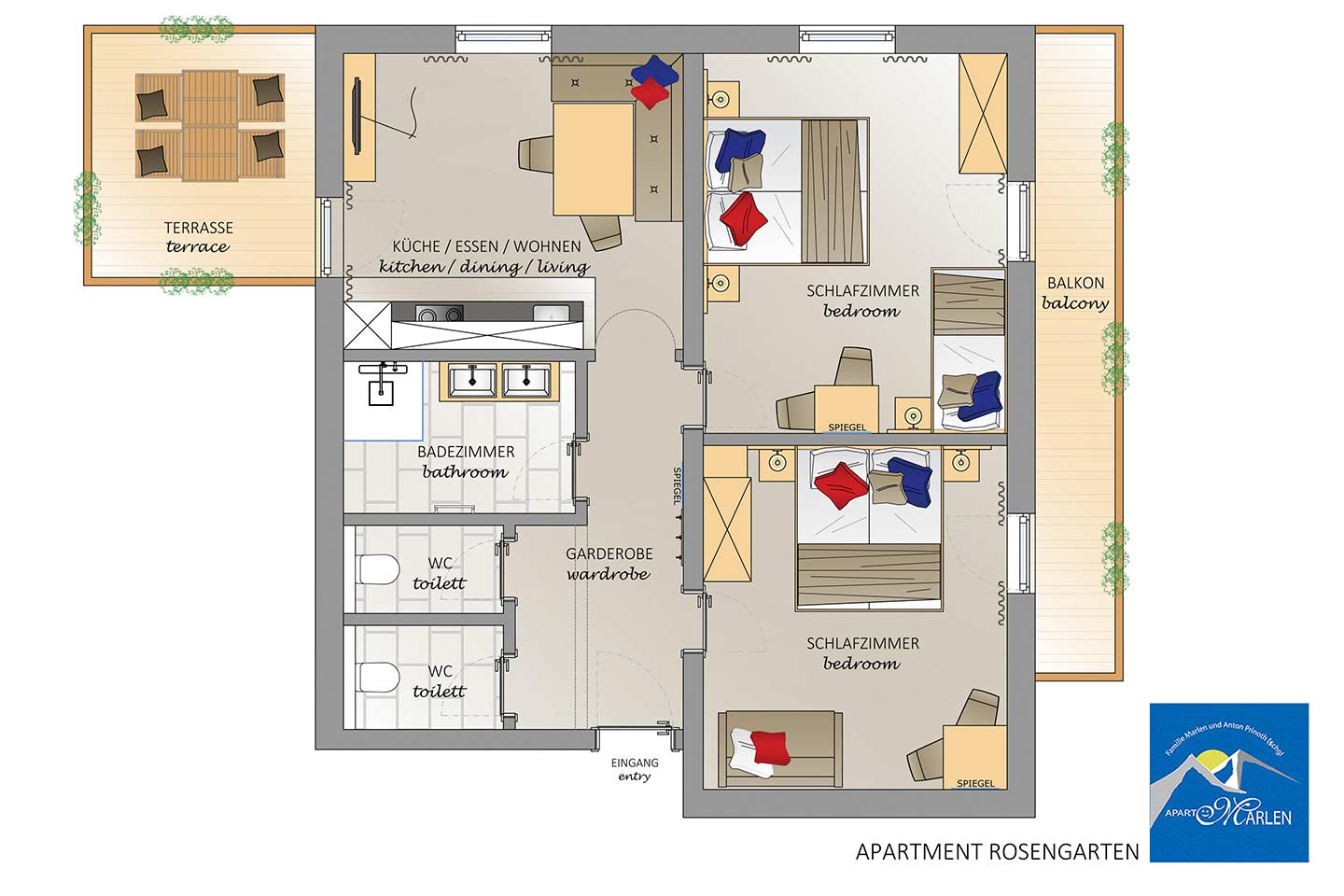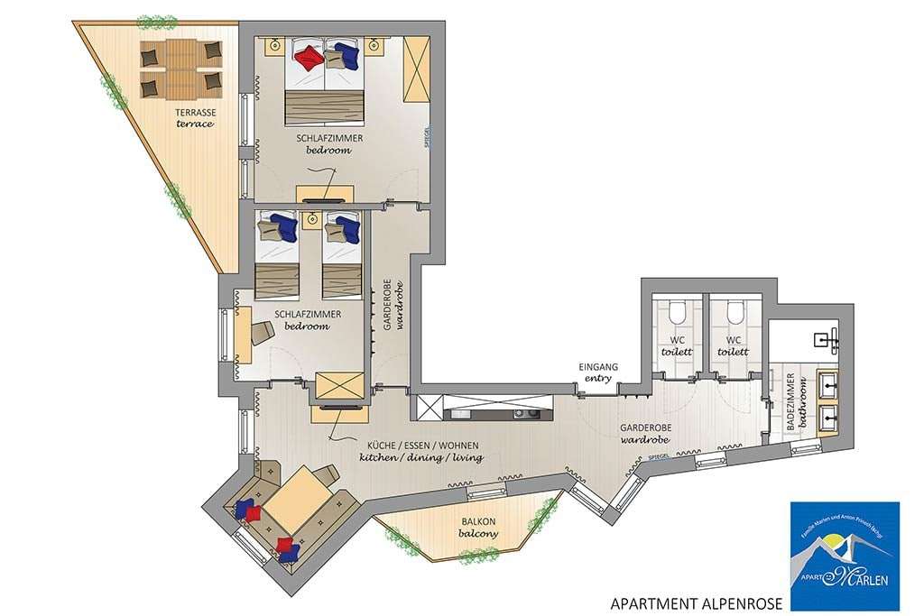 In allen Apartments befindet sich eine Komplettküche mit Geschirrspüler und Mikro (kein Backofen), ein Telefon und Tresor. Es stehen Ihnen je nach Wohnungseinheit 1-2 Parkplätze zu Verfügung - weitere Parkplätze nur auf Anfrage und Aufpreis.